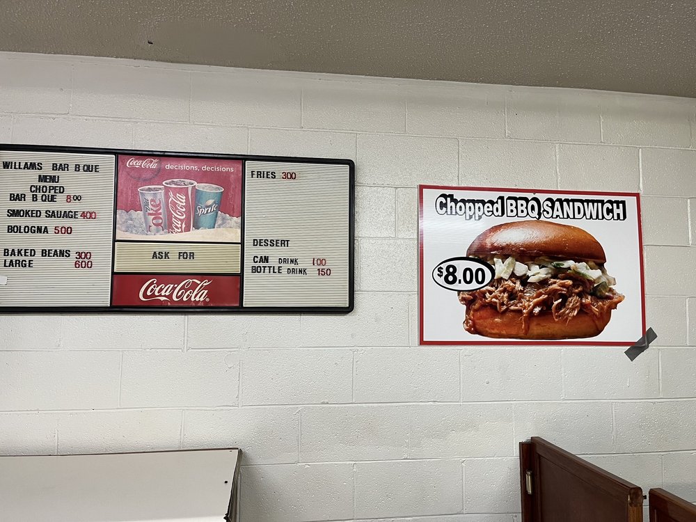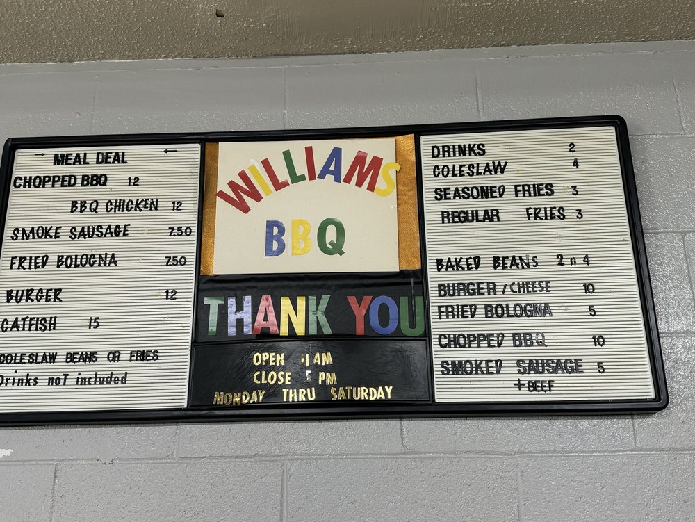 William’s Bar-B Q offers amenities such as Takeout, Good for Kids, Outdoor Parking, Street Parking, Parking Lot, Lunch, Accepts Contactless Payments, Takeout, Good for Kids, Outdoor Parking, ensuring a comfortable and convenient experience for clients.